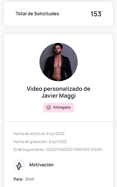 Que subidón. No podía creer que pasara de nuevo. Llego de pasear mi perrita sobre las 9:30 y veo mail de famosos y digo no puede ser. Podía ser publicidad. Que nervios, tengo pedido otro video pero estaba seguro que era él. Con lo detallista que ha sido contestando y dando me gusta a todo sabía que en seguida me grabaría mi video pero no tan inminente. Lo tenía desde antes de las ocho, que rabia. Es el tercero que pido y el primero que llega. Ayer pedí dos y mejor que el otro (no son los dos de esta página)me tarde y el primero que pedí pues me da igual ya si llega o no. Lo pedi porque tenia descuentos y para quitarme la tentación de pedir este y acabé pidiendo los dos.